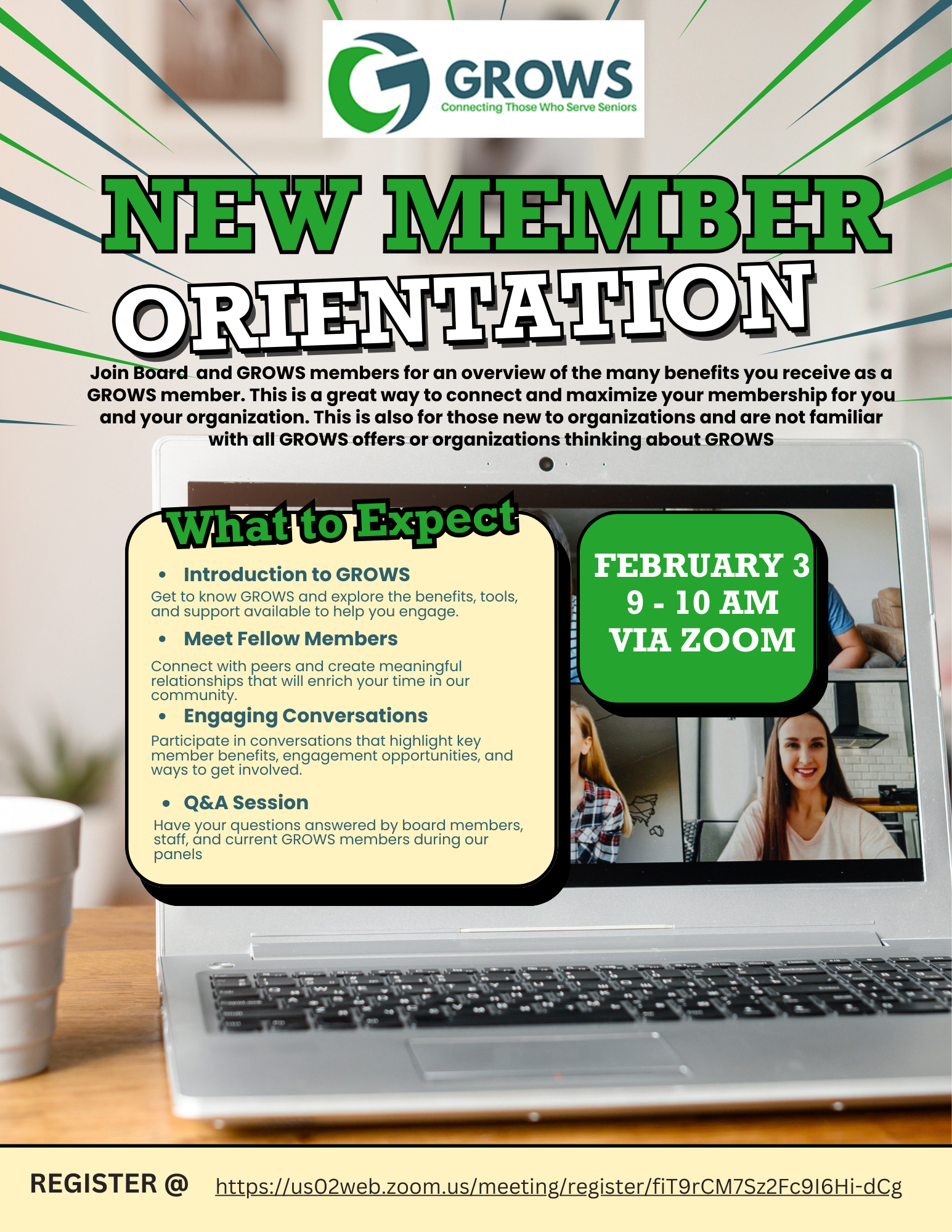 Established in 1989, Grass Roots Organization for the Well-being of Seniors (GROWS) is the premier platform for networking, education, and advocacy among senior service professionals in Montgomery County, MD and the Washington D.C. Metro area. Our passionate community is dedicated to enhancing the lives of older adults.